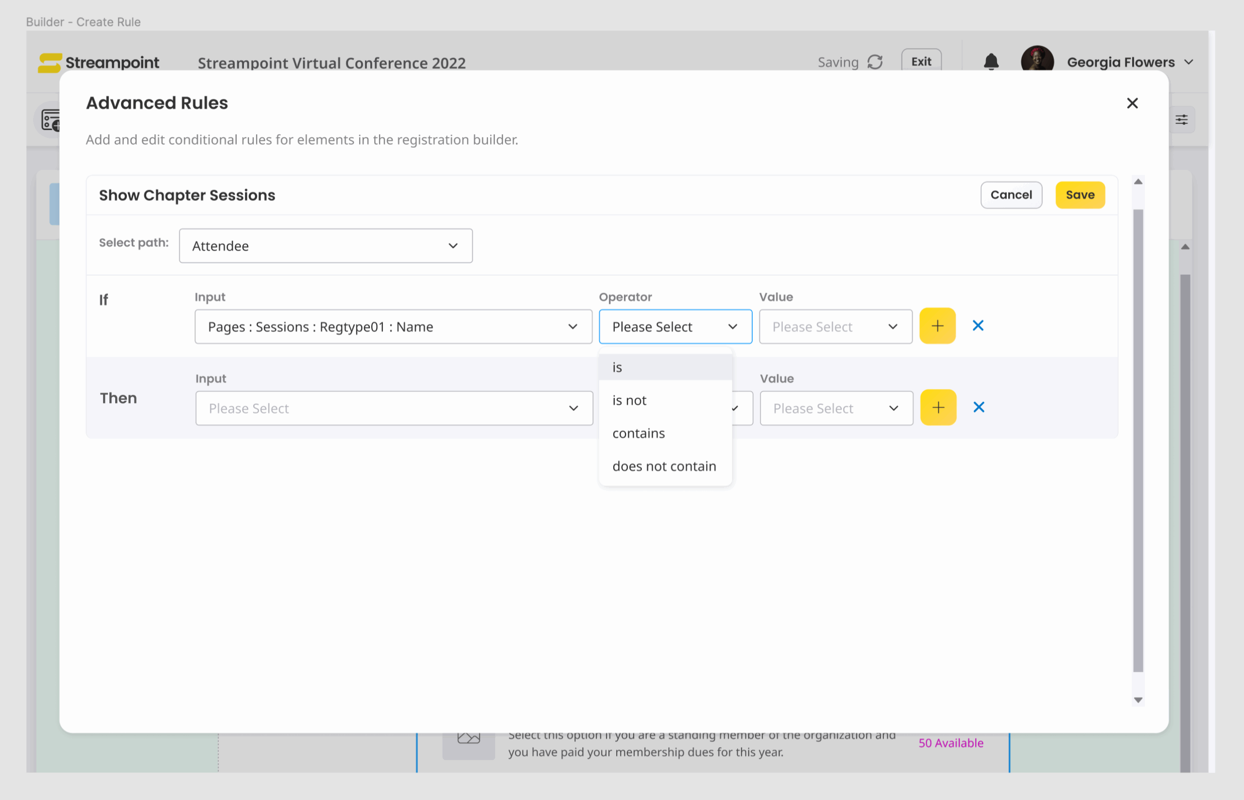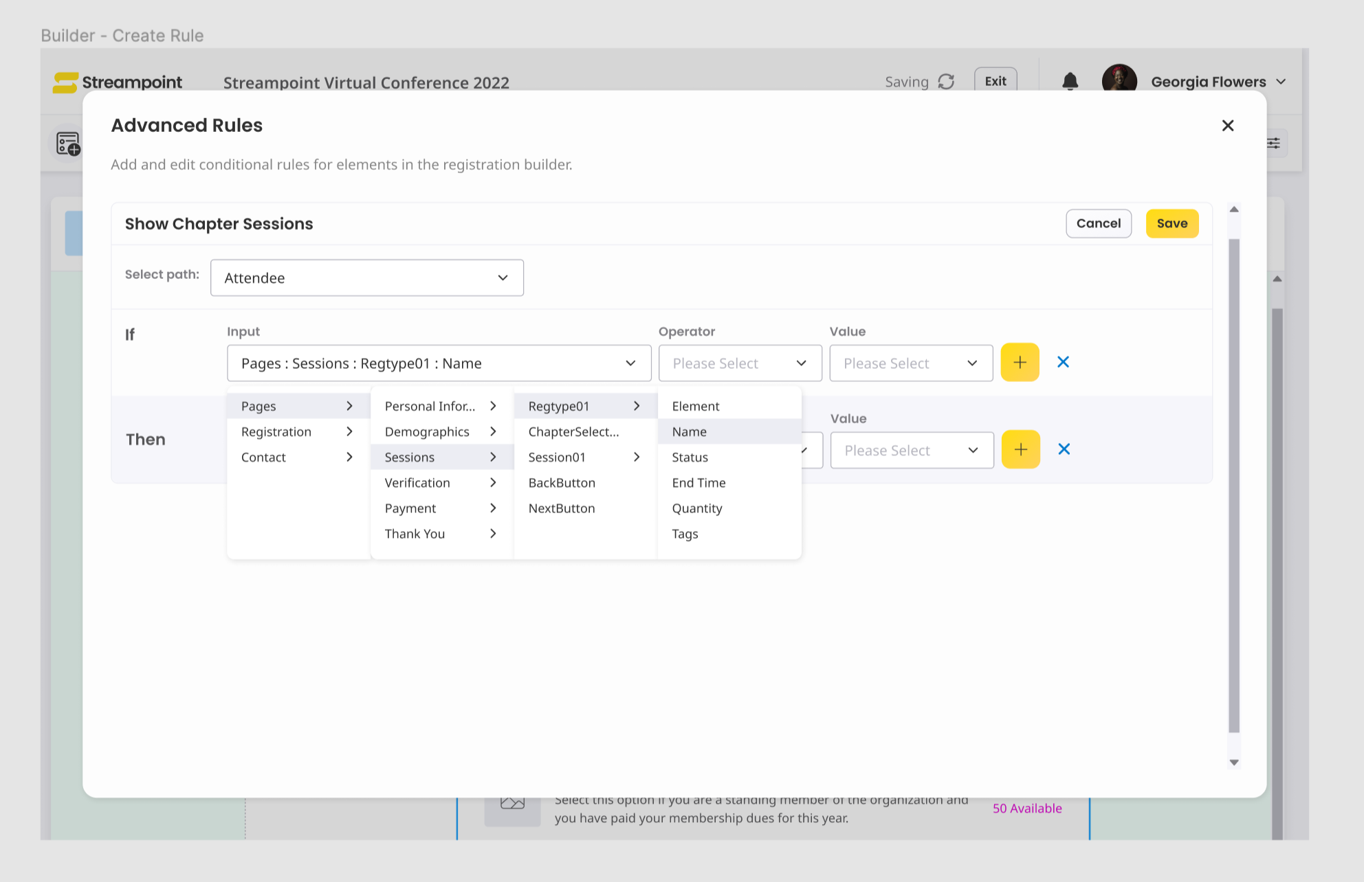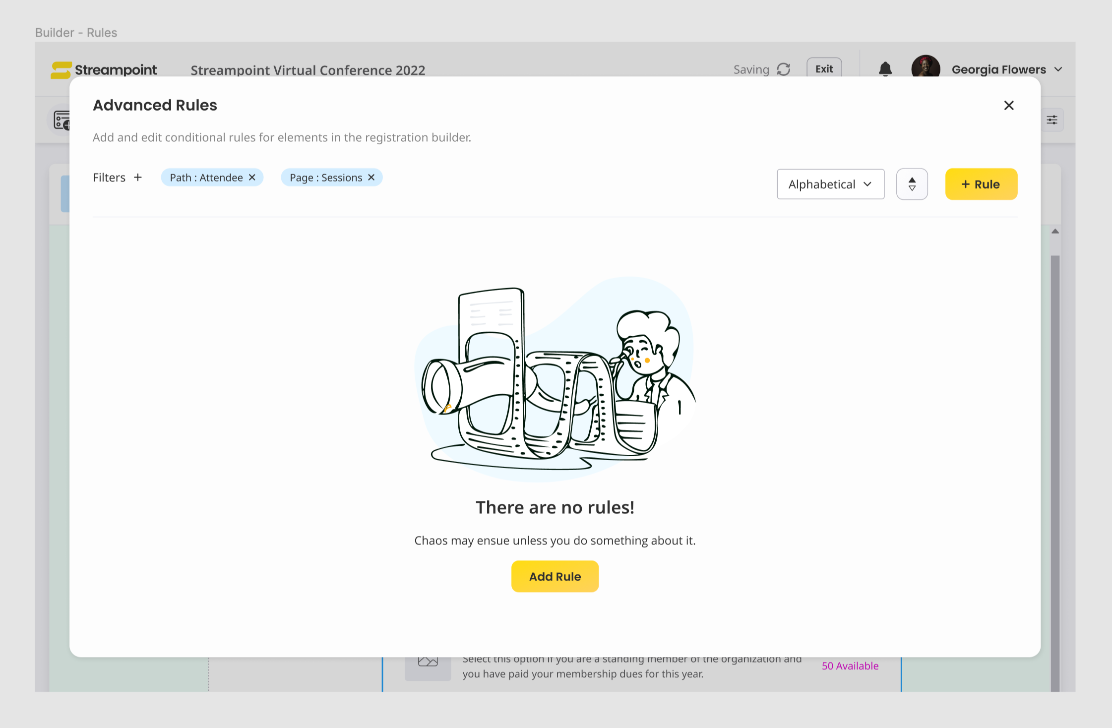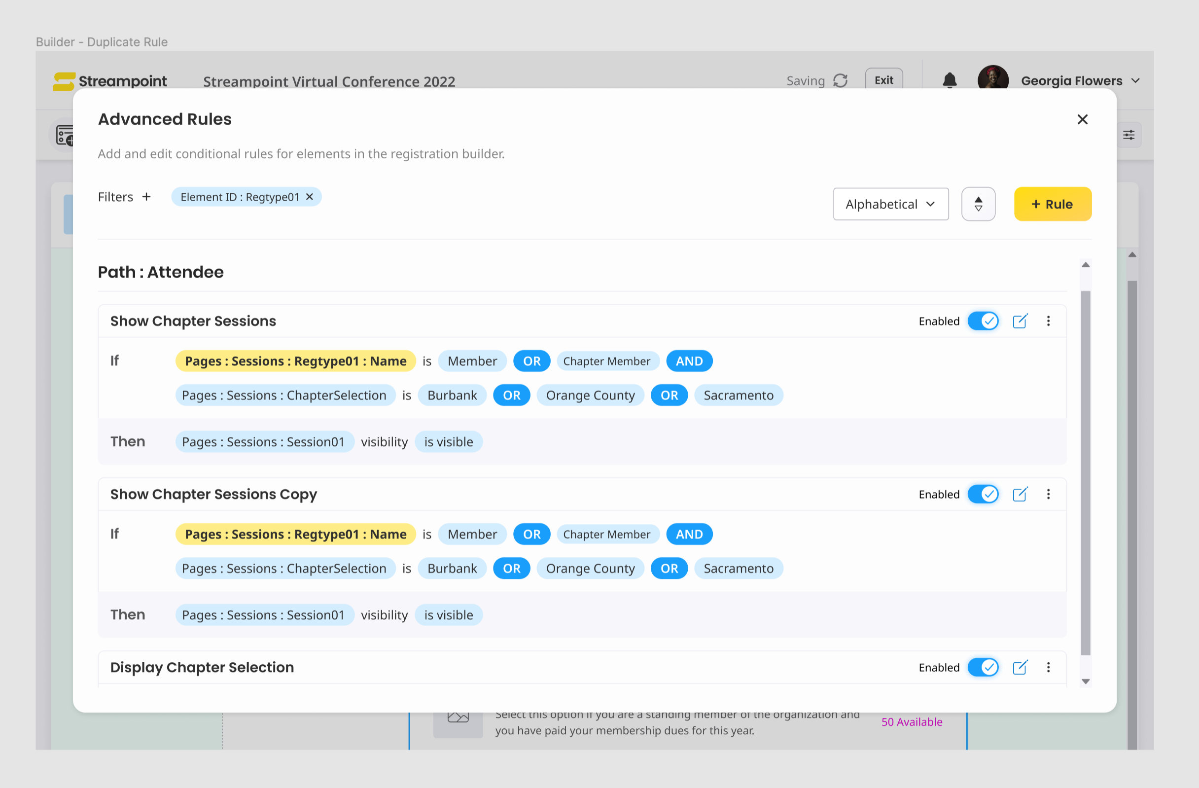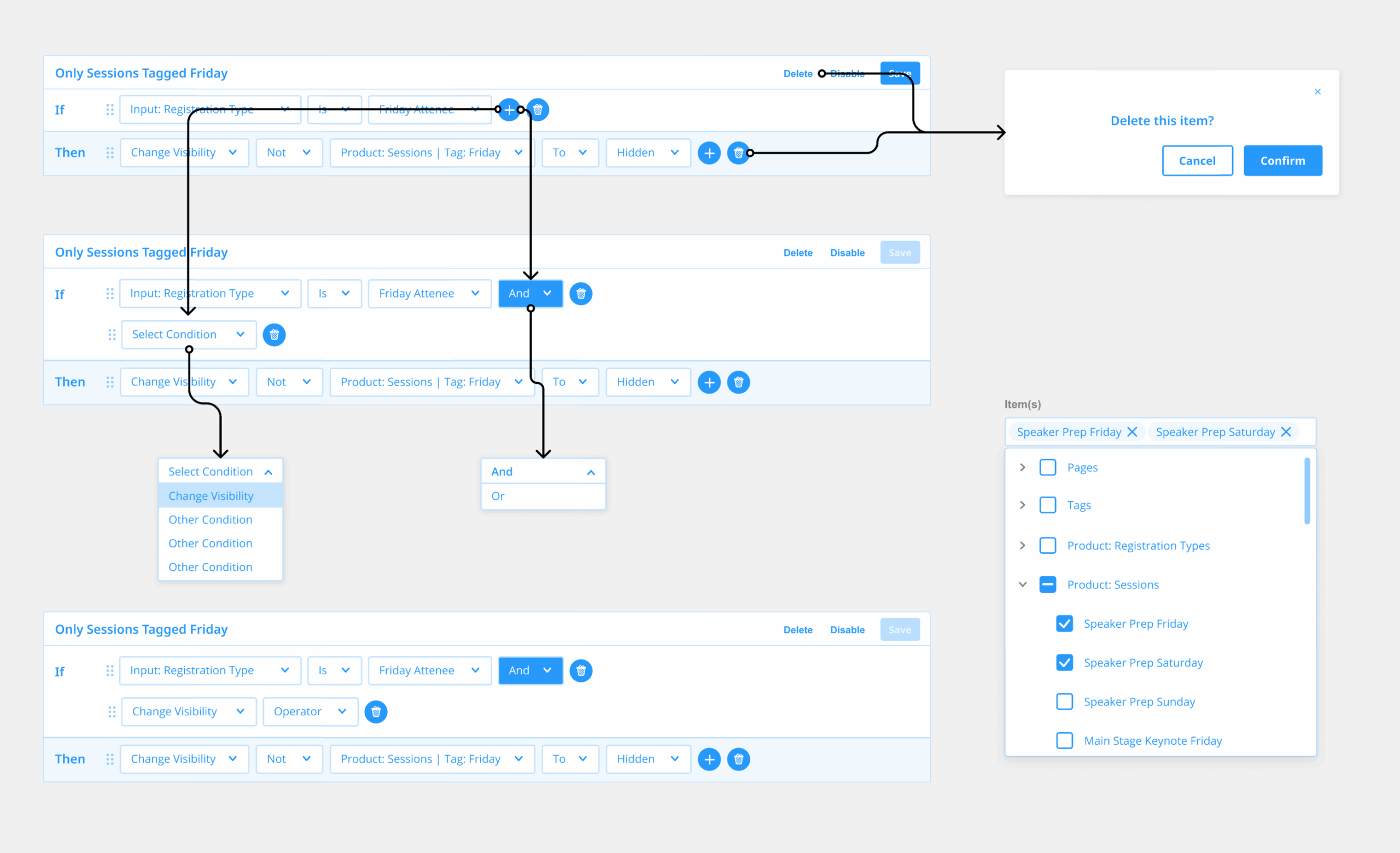 Competitive Analysis: Evaluated enterprise event platforms mainly Cvent and Bizzabo, finding that most offered basic conditional logic but lacked intuitive visual rule builders. This presented an opportunity to differentiate through user experience rather than pure functionality.