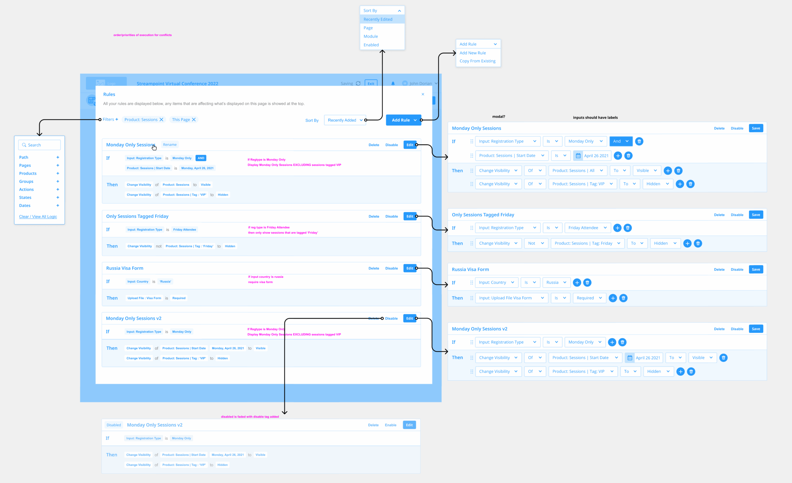 Key Takeaways: Early prototyping with power users revealed the importance of clear presentations We focused heavily on a visual builder required, taking several design iterations to balance power-user needs with accessibility for occasional users. Technical constraints around real-time rule evaluation proved challenging to the developers, but they were able to update the back-end to properly support it.
